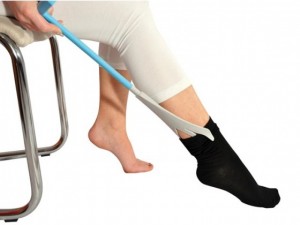 La forme en plastique rigide de l’enfile bas « Easy On » garde le bas ouvert pour vous permettre d’enfiler le pied dans le bas. La tige en plastique du désenfile-bas « Easy Off » est munie d’un embout avec deux broches de chaque côté. Pour enlever votre bas, glissez l’extrémité de l’embout de cet outil entre le haut de la chaussette et la cheville et poussez le bas vers le talon avec les deux broches retenant le bord du bas. Les instructions complètes sont fournies avec le produit.